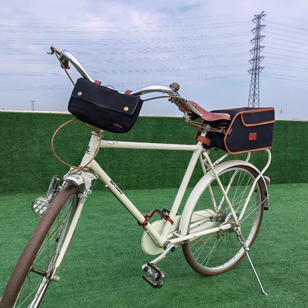 Comments:I have a 70s bike and the object in question is really a very pleasant addition as well as practical and functional. The bag is not made for many objects, usually I put my wallet, phone, coins and some small objects in it. Excellent grip on the handlebar due to the leather straps, the canvas is of excellent quality. It is a great product considering the function, suitable for a walking bike
