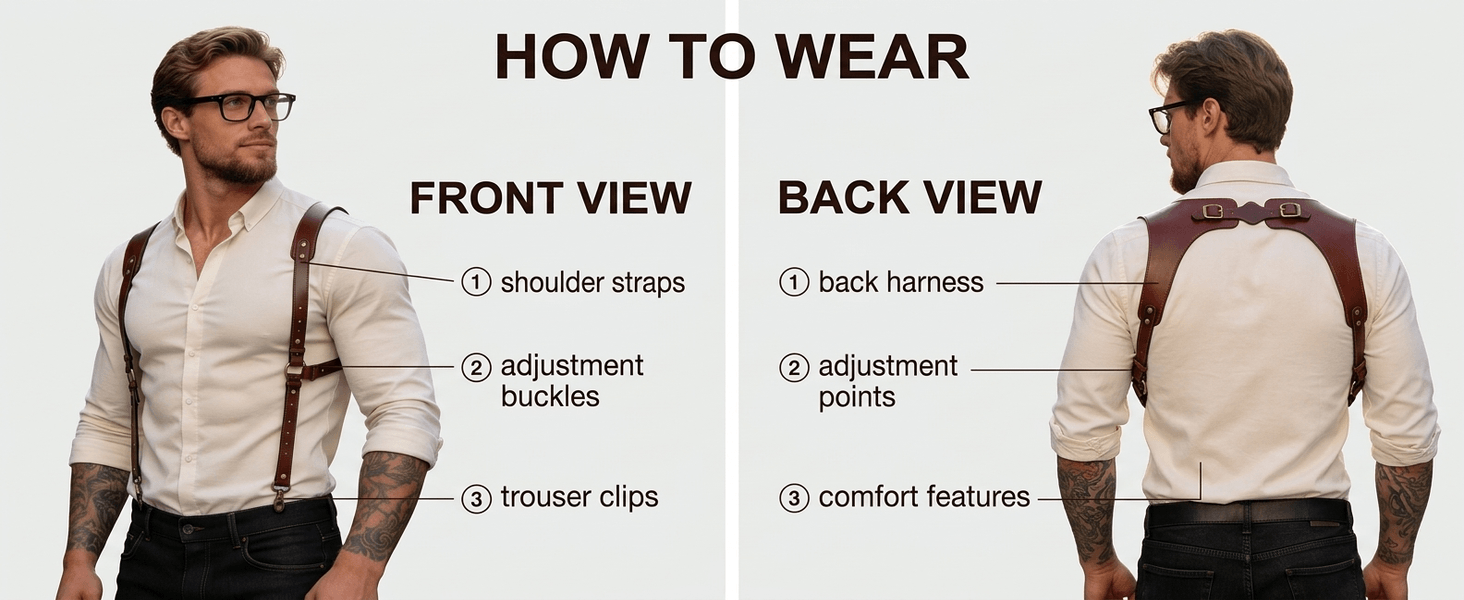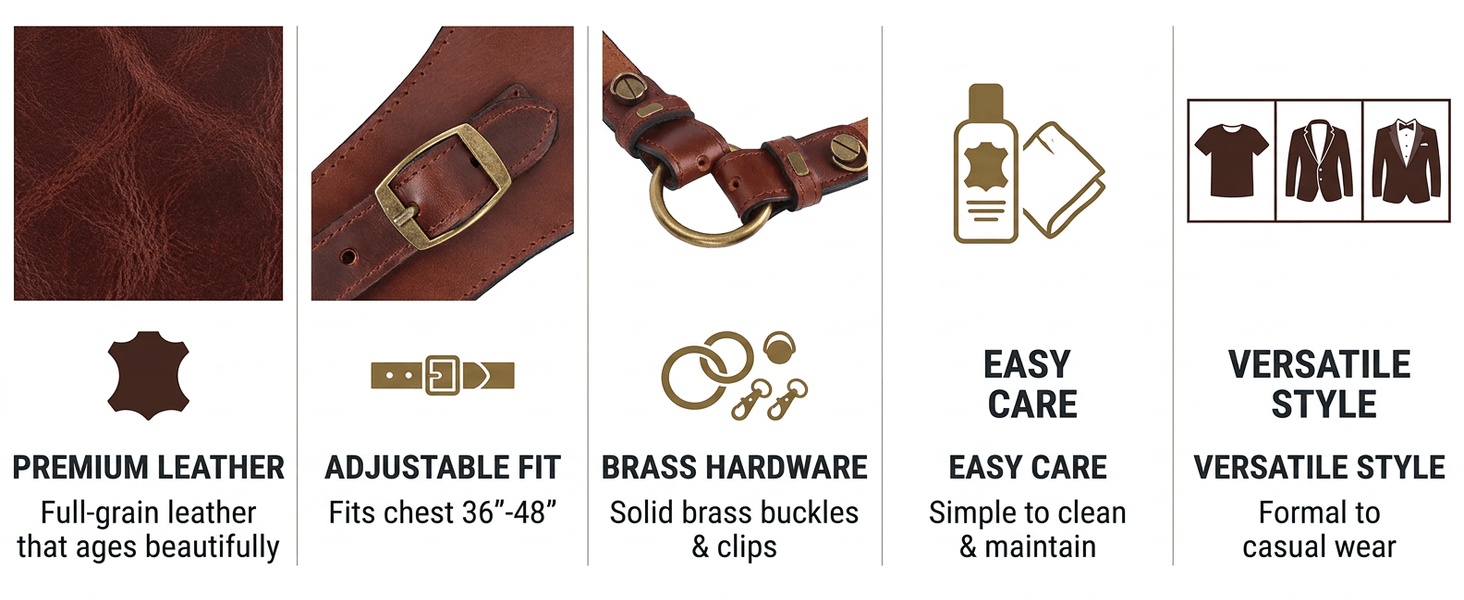 - Easy to Wear & Maintain: The simple, classic design slips on effortlessly, and the high-quality leather is easy to clean and condition, ensuring your suspenders stay looking sharp for years to come.