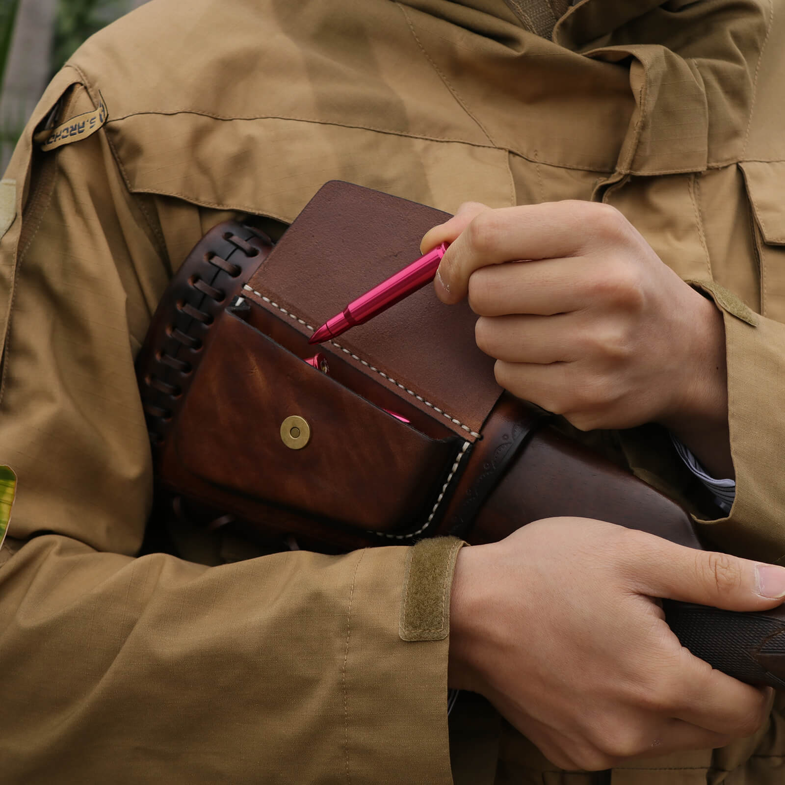 • Buttstock with pouch made of genuine premium leather, High quality workmanship.