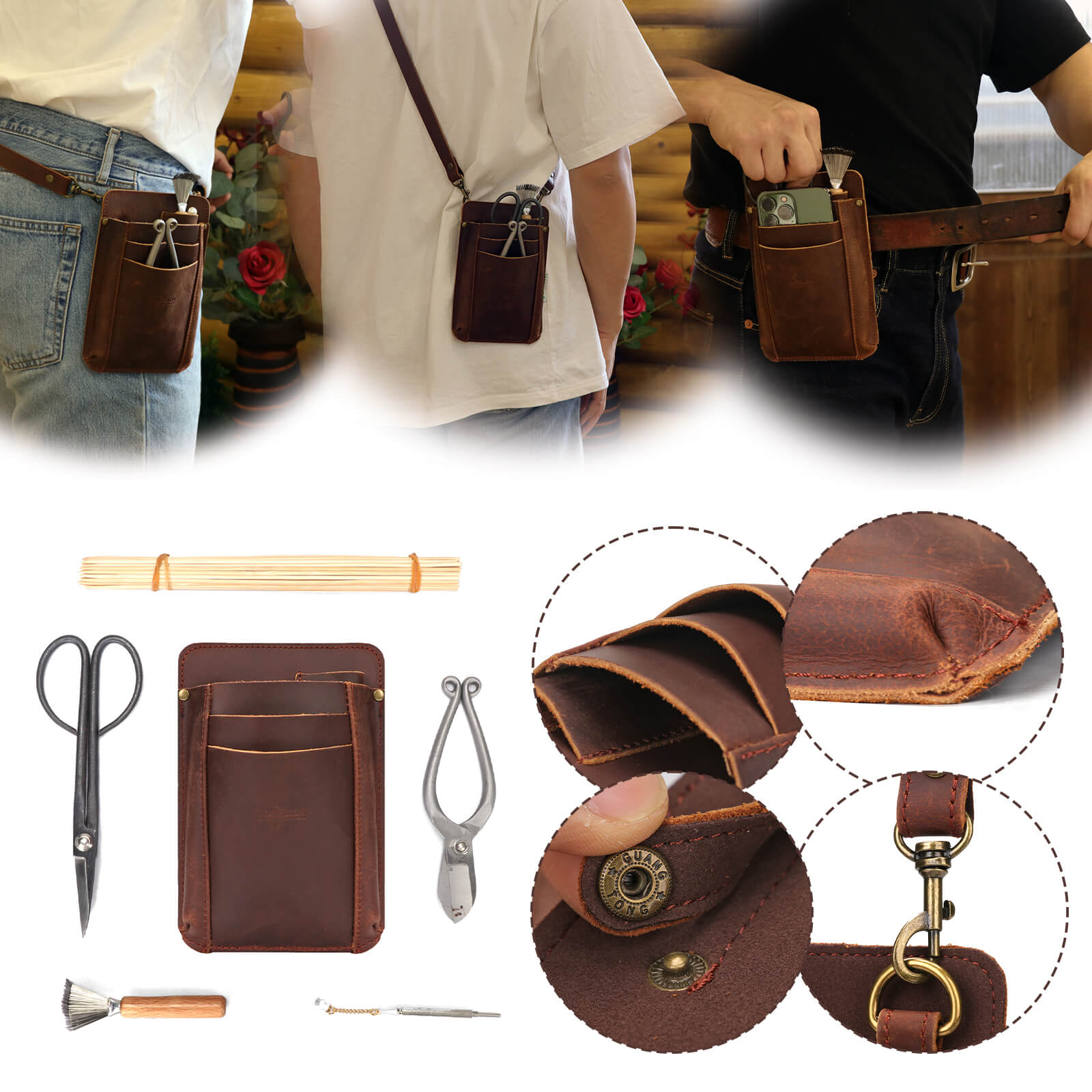 Tourbon Leather Florist Tool Waist Pouch Belt Garden Shoulder Crossbody Tools Bag